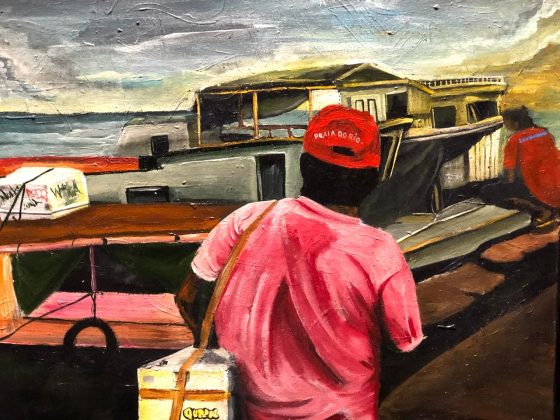 De origem Kokama, a artista Wira Tini é pintora autodidata. Ela mescla modernismo, cosmologia indígena e paisagem urbana amazônica em uma poética de ancestralidade, território e memória familiar. Em obras como Rodó, Beira da Amazônia e Amazônia Urbana, ela reflete a modernidade imposta, os caminhos das águas e as presenças invisibilizadas em Manaus. “Meu pai conduzia barcos que até hoje transportam a população ribeirinha. Eu mesma aprendi a manejá-los e naveguei bastante pelo rio”, diz.