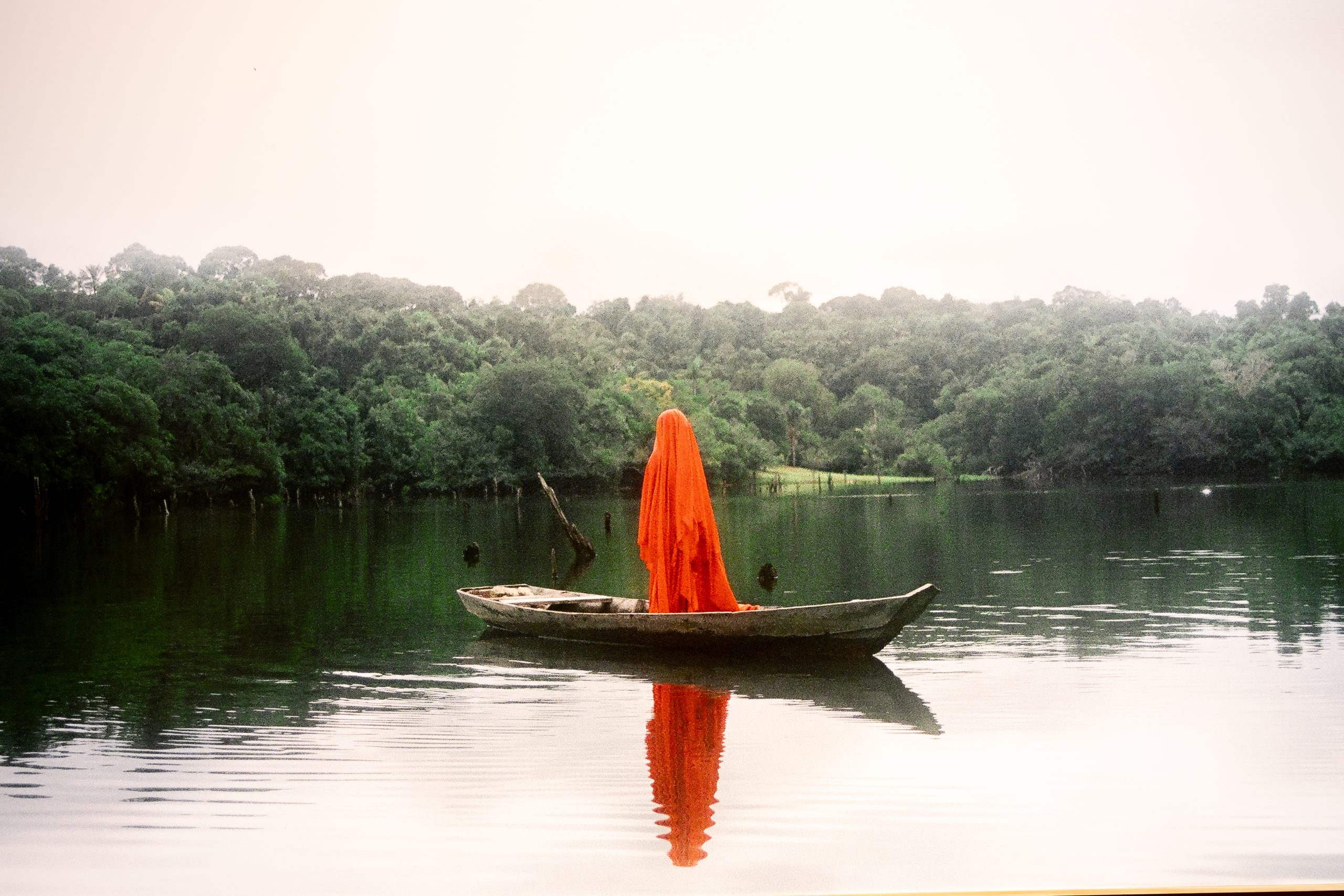 Com forte carga poética, Sonhos de uma Amazônia sem fim, Encantado (2023), do brasileiro Alessandro Fracta, transforma a travessia em metáfora da experiência amazônica como território de deslocamento, resistência e invenção. Sobre o rio de dimensões oceânicas, ergue-se uma figura solitária: de pé na embarcação, envolta por um pano vermelho. Cor de ambiguidade simbólica, sangue e ferida, mas também fogo e vitalidade, funciona como eixo de tensão entre vida e risco, permanência e transformação. Ao situar-se no limite entre fragilidade e resistência, a obra aponta para as condições contemporâneas da Amazônia, onde práticas de destruição e modos de vida tradicionais coexistem em embate constante.