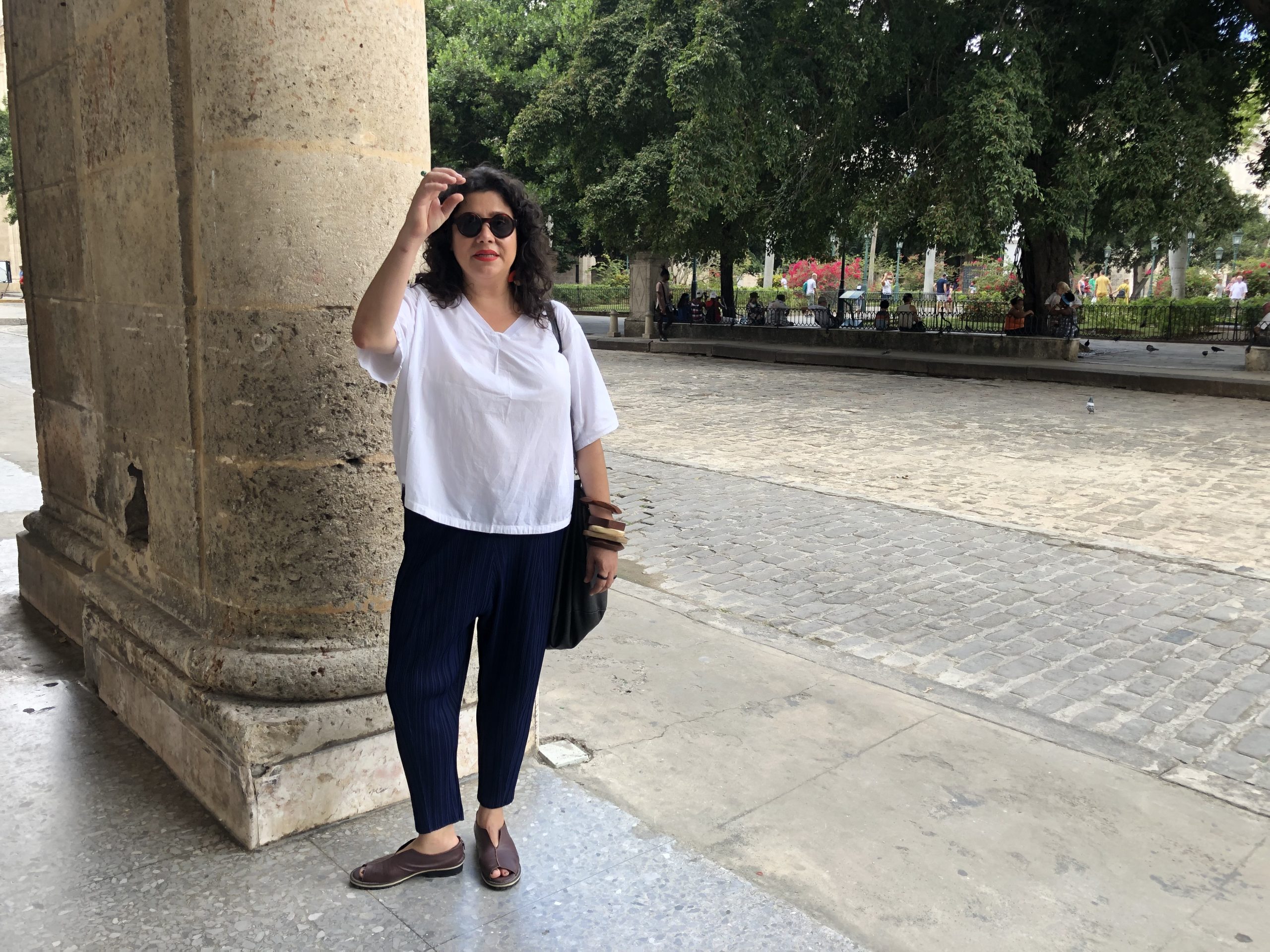 A Bienal de Havana transcende seu espaço físico e neste ano chega a outras locais como Matanzas, uma das cidades culturais de Cuba. Lá, Marilá Dardot realiza a utopia de diluição da arte na vida cotidiana. “Meu trabalho é um desdobramento de uma residência que fiz no México, em 2015, no momento do episódio dos estudantes desaparecidos. Escolhia manchetes de jornais e diariamente intervinha com textos escritos com água sobre um muro de concreto. À medida em que escrevia, o texto ia se apagando”. Jacques Rancière diz que há uma gênese estética compartilhada entre a arte e a política, ambas são maneiras de recriar as propriedades do espaço e as do tempo. Marilá vê seu trabalho se transformando nos últimos anos, deixando uma visão otimista ligada à literatura, poesia, ficção e natureza, para mergulhar em uma visão mais pessimista diante de fatos e notícias políticas do Brasil. “No ano passado conheci María Magdalena Campos-Pons, que me convidou para participar de seu projeto Rios Intermitentes, que integra a 13ª Bienal de Havana, na cidade de Matanzas e eu aceitei”.