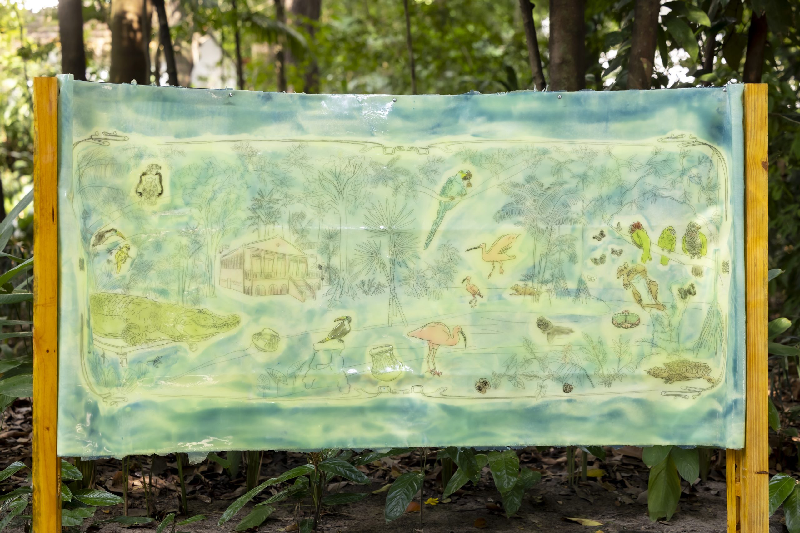 Em comum, os artistas, entre os quais também estão Noara Quintana, PV Dias, Sallisa Rosa e Déba Tacana, constroem suas obras em relação direta ao lugar, incorporando elementos da paisagem e dos ciclos naturais do Parque Zoobotânico. Como afirmam os representantes do Museu Goeldi, Sue Costa e Pedro Pompei, a mostra reafirma a importância de criar vínculos afetivos com o patrimônio natural e cultural da Amazônia: “Compreender a Amazônia exige tanto precisão científica quanto abertura poética.”