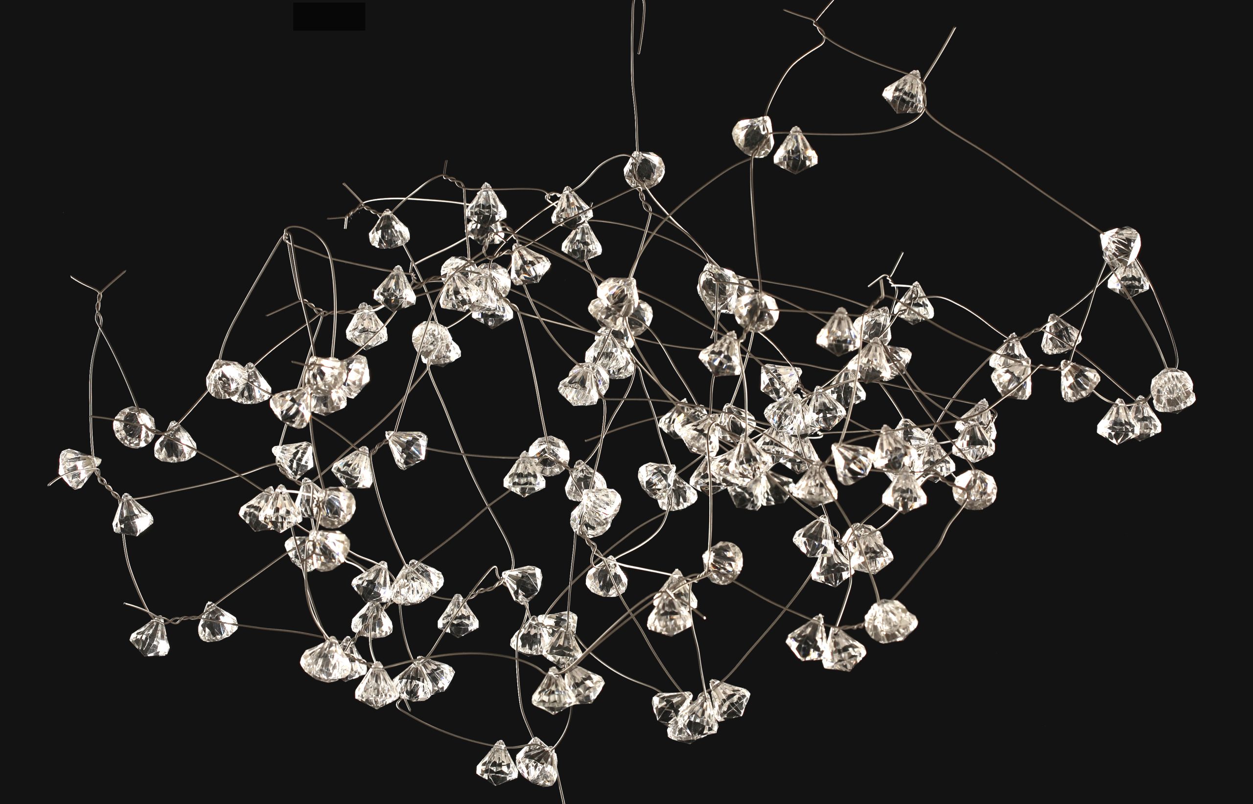 “A ‘Festa no Céu’ é um grande móbile de pássaros de acrílico, araras e outros passarinhos voando com as suas asas abertas, desenhadas com Hori, que são os nossos grafismos do povo Ye’pá Mahsã. É uma obra que conta a história da criação dos pássaros, do surgimento das cores, dos desenhos, da arte, das línguas, da beleza, da memória e dos sonhos. São grafismos que nós usamos nas nossas panelas, nas nossas cestarias e nas nossas pinturas corporais, e que fazem parte da nossa cultura. Os pássaros são transparentes e têm reflexos iridescentes, de arco-íris, projetando as suas sombras iluminadas no chão. Eles são transparentes, assim como são transparentes nossos sonhos, nossos pensamentos e nossos sentimentos”, explica Daiara Tukano.