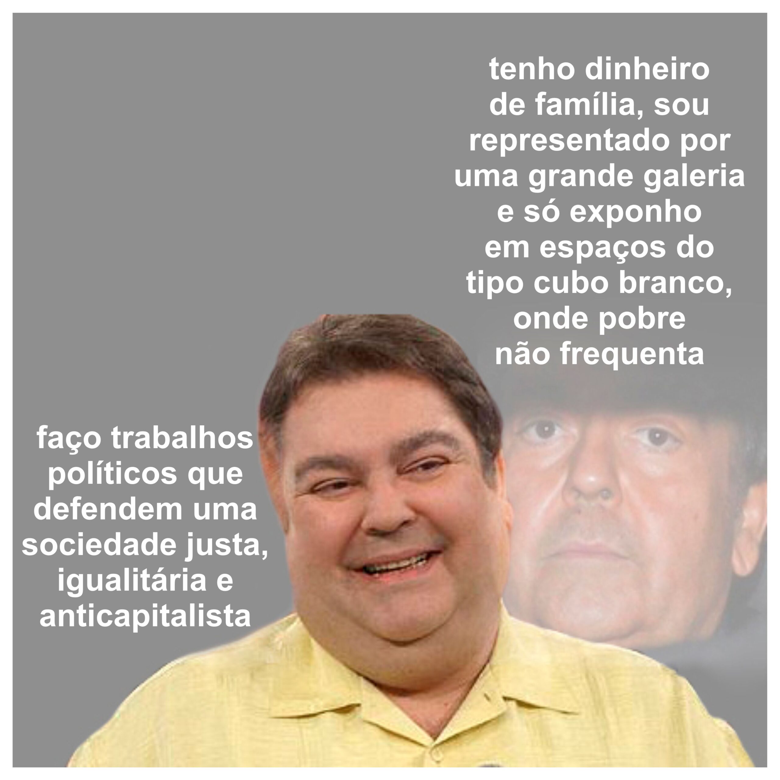 Quando o establishment começa a engolir memes (que até então resistiam a ele com críticas ácidas e bem-humoradas), eles perdem força (ao integrar o que uma vez enfrentaram)? Uma constatação importante é feita por Hilde Lynn Helphenstein, criadora do personagem virtual Jerry Gogosian (o nome alude a duas figuras reconhecidas no mundo da arte, o crítico Jerry Saltz e o mega galerista Larry Gagosian): “As maneiras como pretendo monetizar o que criei com @jerrygogosian, por exemplo, serão um meio de alcançar uma versão do mundo da arte com a qual posso conviver em uma microescala. [De todo modo,] minhas realizações artísticas serão perpetuadas pela máquina capitalista e não tenho nenhum problema com isso. Um artista tem que sonhar grande (e comer)”.